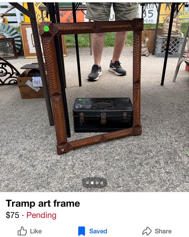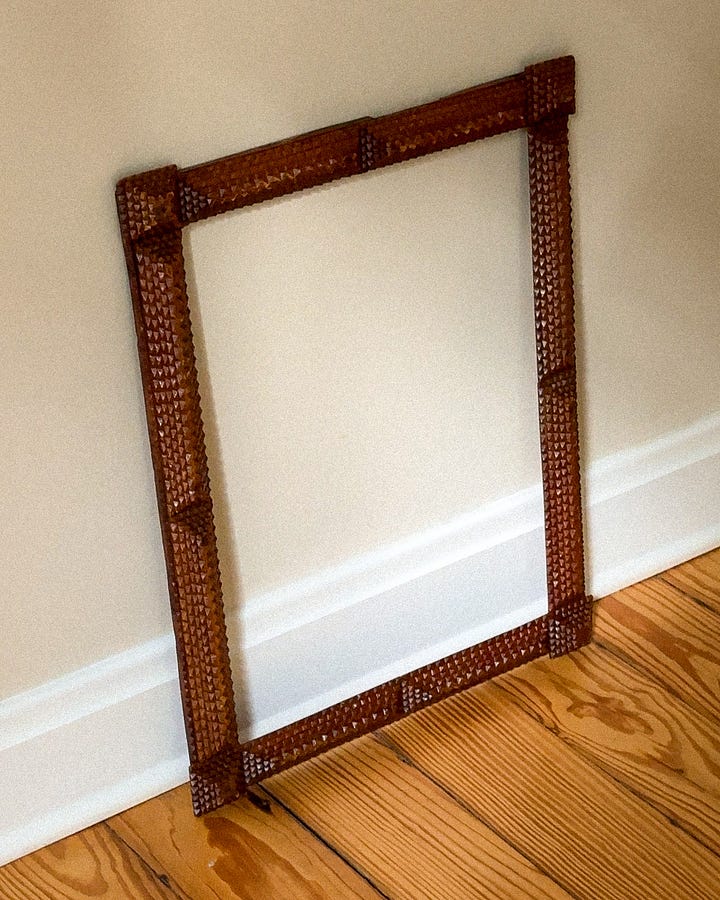 If you’ve been around the channel, you may already know about my deep, undying love for tramp art. I’m always on the hunt, checking Facebook Marketplace, estate sales, and antique malls. When a gorgeous, relatively large frame appeared on Facebook Marketplace in great condition and at a fair price ($75, I offered $60, and they accepted), it was an instant yes.