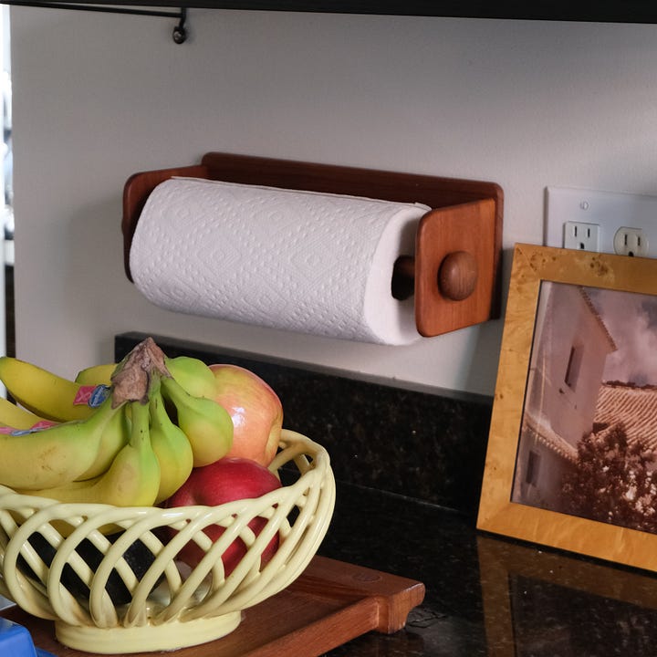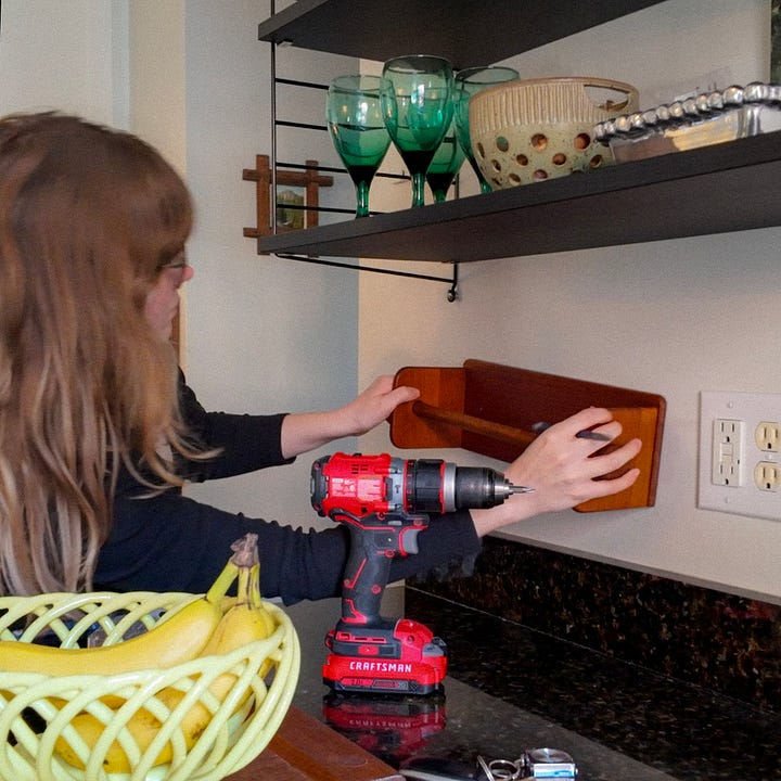 Nothing screams “I’m officially an adult” quite like getting excited over a paper towel holder. Yet here I am. Recently, I came across this photo from Thirty3cubed on Pinterest that made me realize, why am I wasting my valuable countertop space? While I am obsessed with her exact paper towel holder, I did opt for a simpler one because mine would be directly below shelves. (And because it cost less to keep it real.)